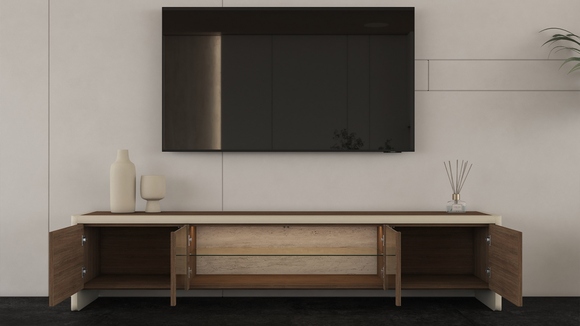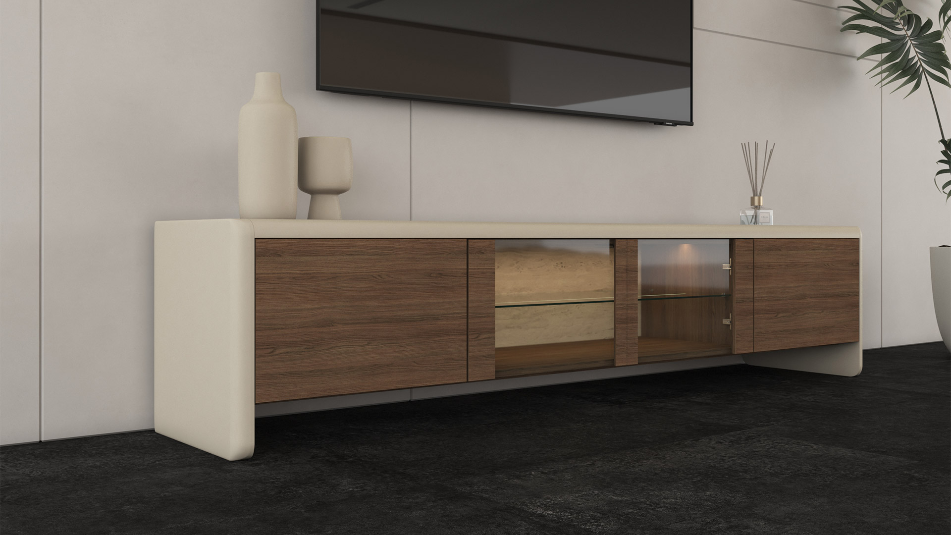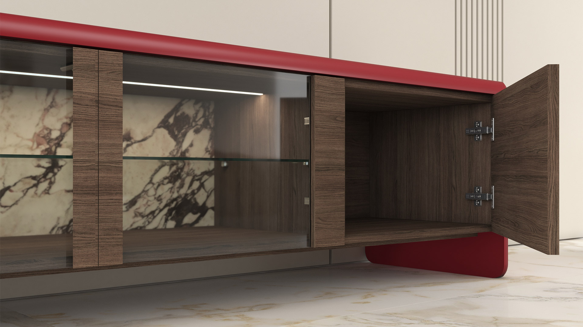 Είναι κατασκευασμένο από ξύλο δρυς σε συνδυασμό με λάκα, σε χρώματα επιλογής και τζάμι στις πόρτες (διάφανο ή φιμέ).