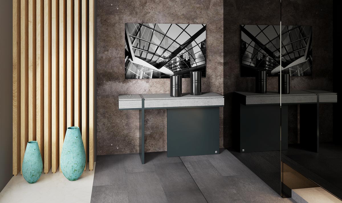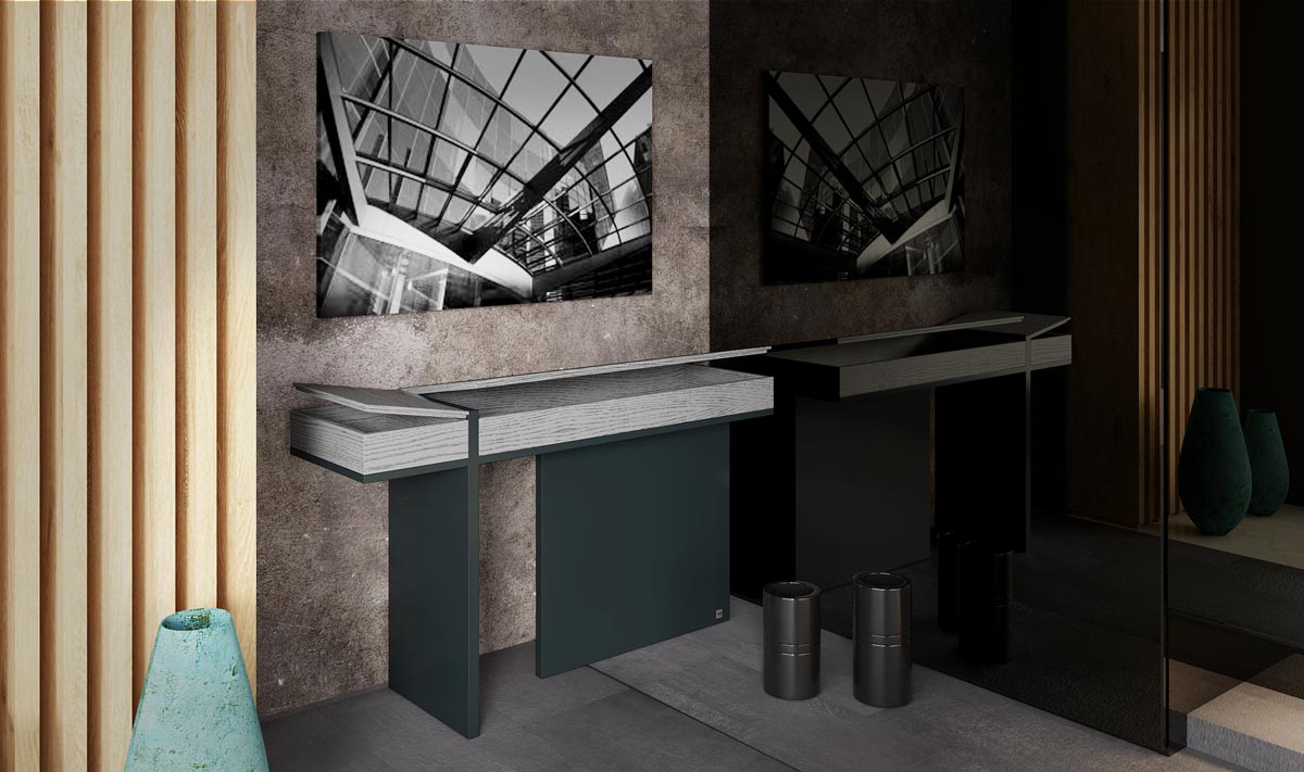 Λιτή κονσόλα με ανοιγόμενα καπάκια για πολλές χρήσεις σε διάφορα σημεία του σπιτιού.